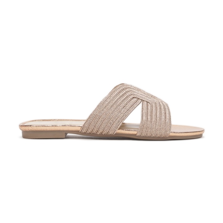 Dodejte svému každodennímu životu nádech elegance se zlatými nazouvacími skluzavkami Vices 2038-449. Tyto stylové boty byly navrženy pro ženy, které oceňují ležérní a přitom efektivní vzhled. Otevřená, kulatá špička a svršek sestávající ze spojených ramínek s jemnými vroubky dodávají lehkost a modernost.