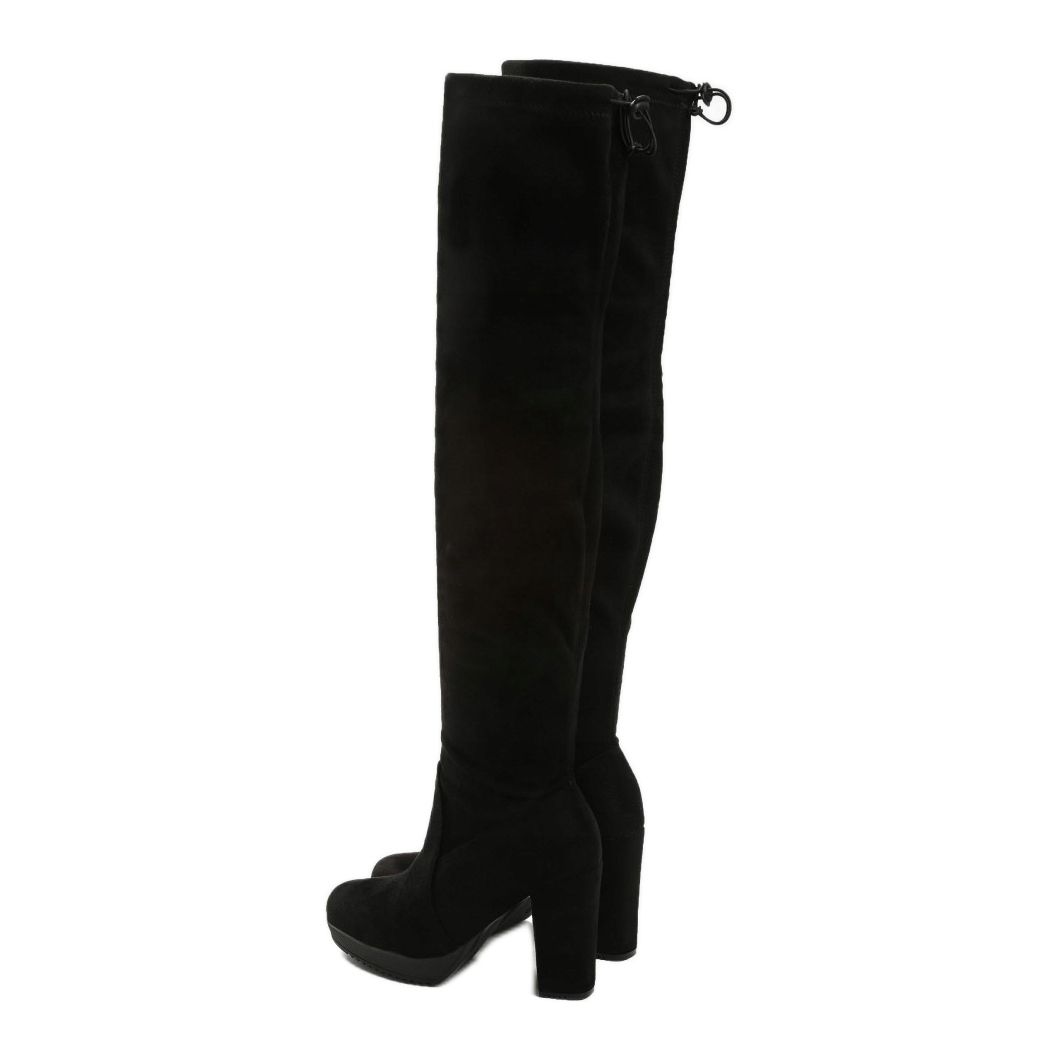 Charakteristickým prvkem těchto kozaček je vysoký svršek sahající nad kolena, který dodává styl a vytváří atraktivní siluetu. Díky kulaté špičce a 10centimetrovému podpatku je obuv pohodlná a stabilní i přes vysoký podpatek, ideální na dlouhé procházky nebo večerní výlety.