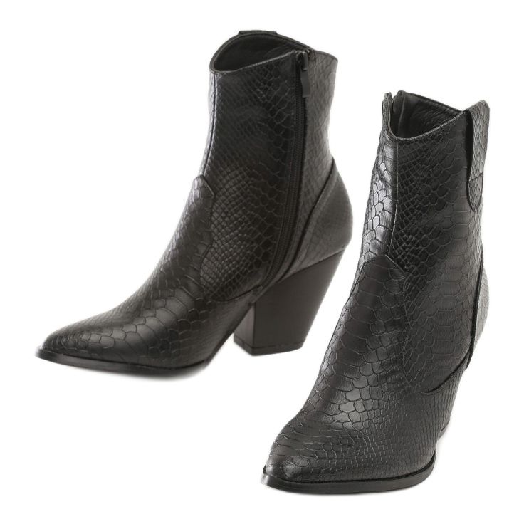 Představujeme jedinečné kovbojské boty Vices 3329-38 v klasické černé barvě, které skvěle doplní jakýkoli podzimní a zimní styling. Tyto originální boty se zapínáním na praktický zip jsou vyrobeny z vysoce kvalitní ekologické kůže, která efektně imituje hadí kůži.