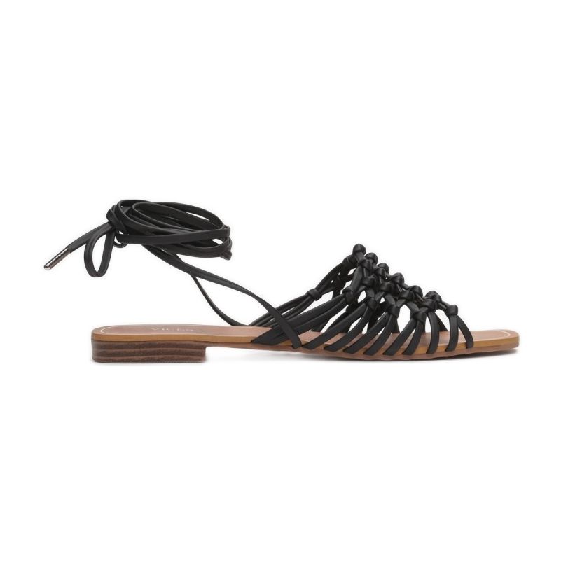 Šněrovací sandály Vices 3355-38 v černé barvě jsou perfektní volbou pro ženy, které oceňují jednoduchost a eleganci. Tyto klasické ploché sandály kombinují funkčnost a módní design. Otevřená hranatá špička je dělá moderními a překřížené pásky z ekokůže perfektně podpírají nohu a zajišťují komfort nošení po celý den.