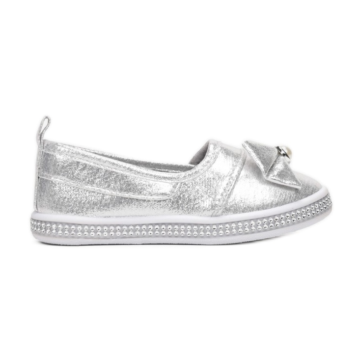 Tenisky Vices se vyznačují praktickým nazouvacím zapínáním a širokou mašlí s půvabnou perličkou na přední straně, která dodává jedinečný styl. Kulatá špička zajišťuje pohodlí při nošení a textilní materiál s lesklým efektem dělá obuv nejen estetickou, ale i odolnou. Elegantní lemování kolem svršku a hladká smyčka na patě dodávají celku vkus a třídu.