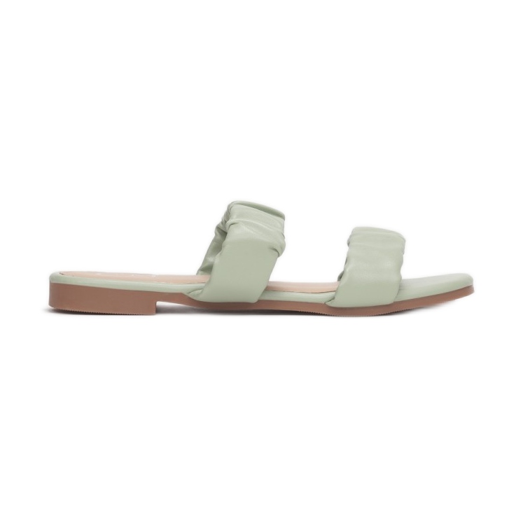 Žabky se vyznačují dvěma jednoduchými pásky podpírajícími chodidlo, které jsou zdobeny jemným vrásněním - díky tomu tyto boty vynikají svým originálním stylem. Otevřená, mírně hranatá špička a odhalená pata dodávají eleganci a zajišťují dokonalé větrání nohou, což je v teplejších dnech důležité.