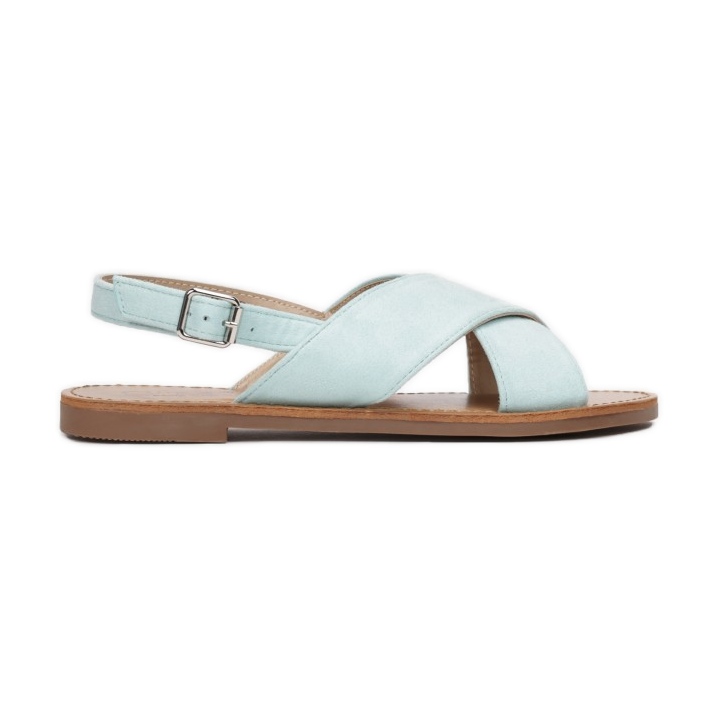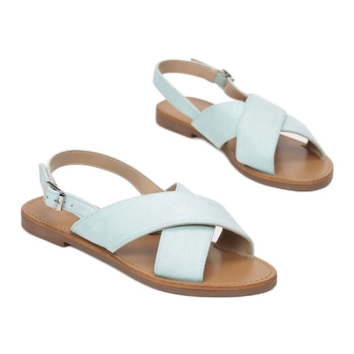 Sandály jsou vybaveny zapínáním na přezku vysoko nad kotníkem, což umožňuje dokonalé přizpůsobení noze a zajišťuje pohodlí při nošení. Otevřené špičky a pata jim dodávají lehkost a zaoblená špička ještě podtrhuje jejich elegantní charakter. Překřížená ramínka z eko semiše zaručují nejen módní vzhled, ale i přiměřenou oporu pro chodidlo.