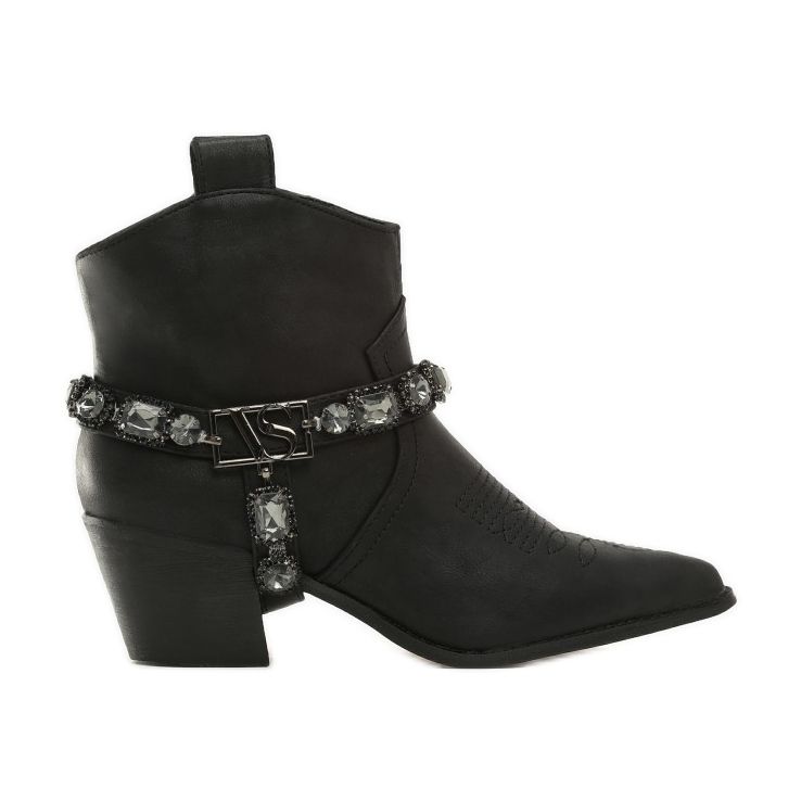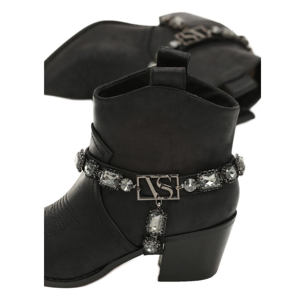 Zde je elegantní model kovbojských bot na vysokém podpatku značky Vices, který potěší každého milovníka stylové obuvi. Model 8500-38 v černé barvě je perfektní volbou pro jarní a podzimní dny. Tyto kotníkové boty vyrobené z vysoce kvalitní eko kůže nejen fantasticky vypadají, ale také poskytují pohodlí na každém kroku.