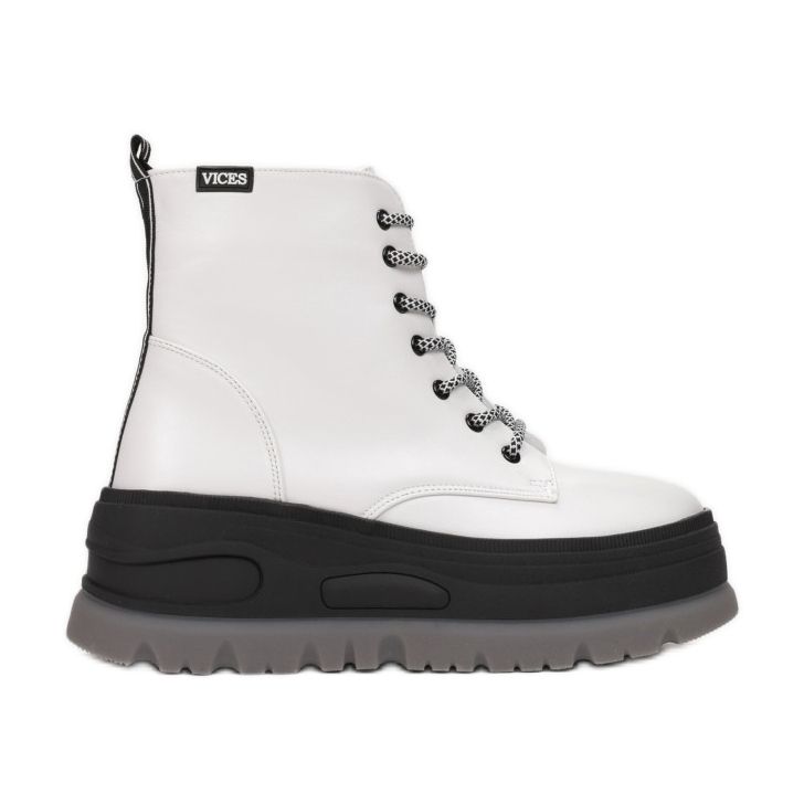 Představujeme kotníkové boty Vices 8603-71 v bílé barvě, které jsou dokonalou kombinací stylu a pohodlí. Tyto šněrovací kotníkové boty se silnou podrážkou z kolekce KeeShoes jsou nepostradatelným prvkem každého módního dámského šatníku.