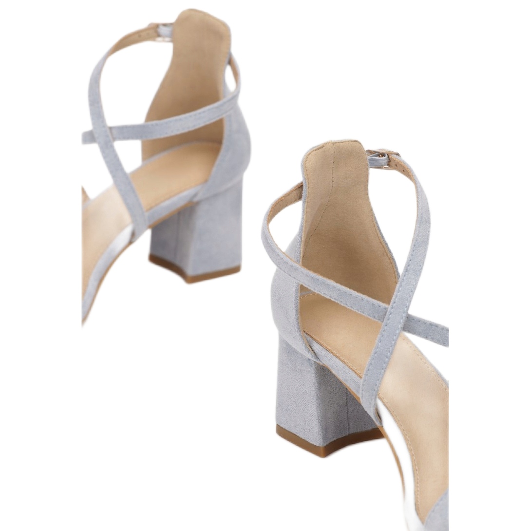 Sandály mají jedinečný design s tenkými pásky, které, módně překřížené na nártu, jemně podpírají chodidlo a dodávají mu jedinečný vzhled. Hranatá špička a otevřené špičky dodávají lehkost a eleganci a zpevněná záda poskytují pevnou oporu.