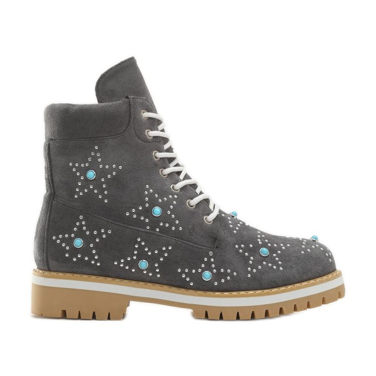 Díky kulaté špičce a neutrální šířce chodidla je model 9090-6 D Grey vhodný pro různé typy nohou a zapínání na šněrování umožňuje dokonalé přizpůsobení individuálním potřebám. Kamínky, které zdobí boty, jim dodávají charakter a originalitu, díky čemuž jsou skvělým doplňkem jakéhokoli stylingu.