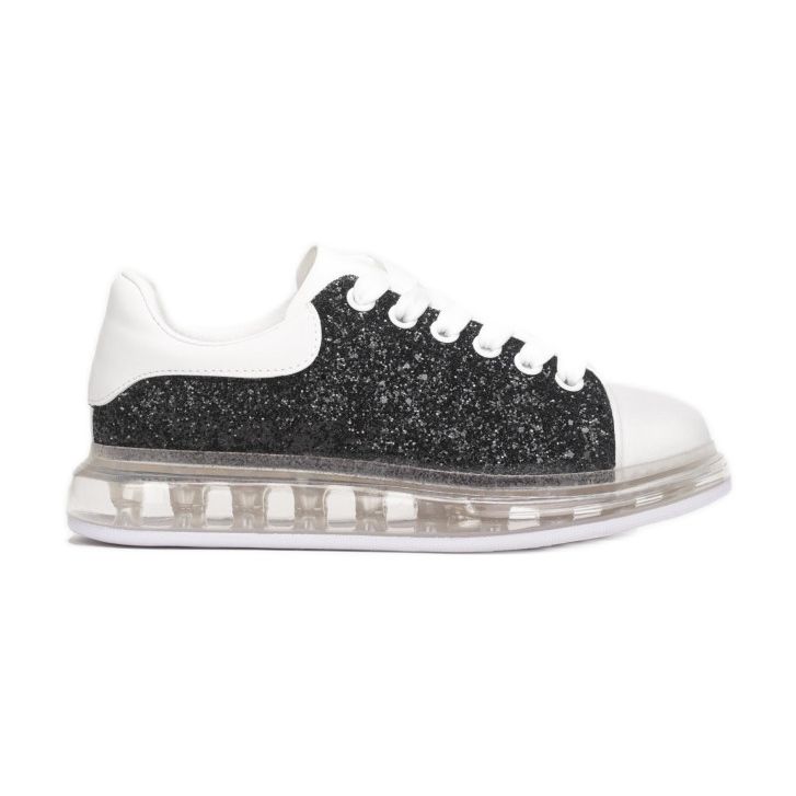 Zajímavým akcentem jsou třpytivé vsadky na bocích, které dodávají jedinečný charakter a lesk. Tyto tenisky se zavazují na ploché tkaničky, což umožňuje jejich snadné přizpůsobení noze. Za zmínku stojí také tlustá podrážka plněná plynem, která poskytuje vynikající odpružení a stará se o vaše nohy během aktivity.