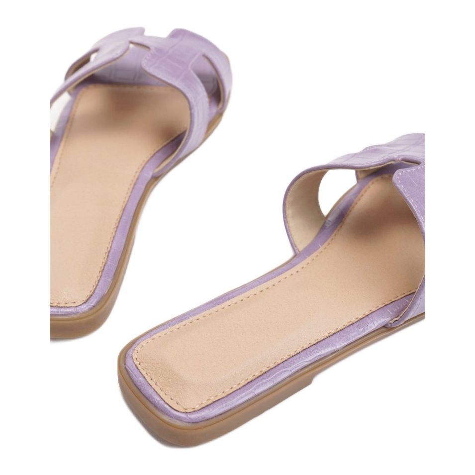 Žabky mají syntetickou podrážku, která zajišťuje stabilitu a odolnost, a nízká výška platformy 1,0 cm dělá z chůze čistý požitek. Vnější materiál a vložka jsou vyrobeny z vysoce kvalitní ekologické kůže, což ovlivňuje jejich atraktivní vzhled a pohodlí při používání.
