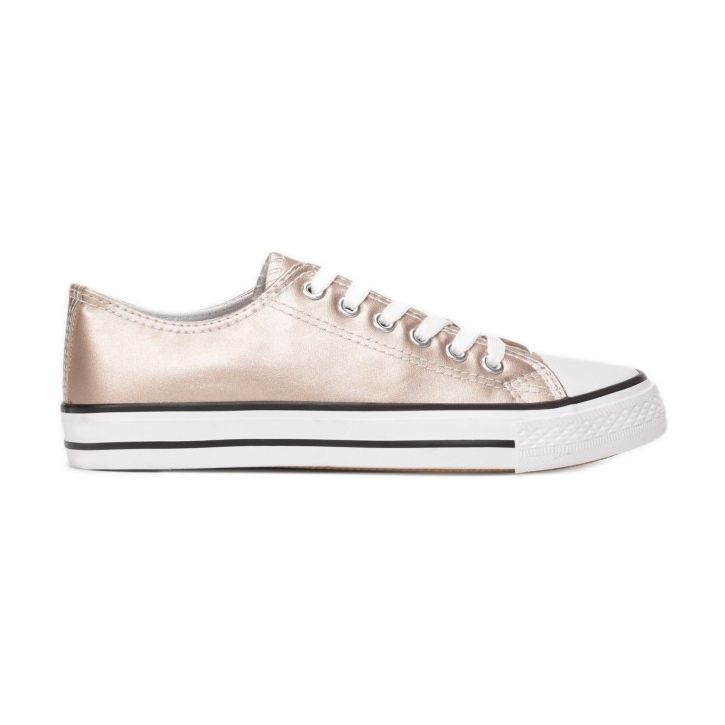 Objevte módu v celé její kráse s teniskami Vices FG-2913-1-449 v barvě šampaňského zlata. Tyto dámské boty kombinují styl a pohodlí, ideální pro jarní a letní dny. Vyrobeny z vysoce kvalitní eko kůže, vypadají elegantně díky poutavé metalické úpravě.