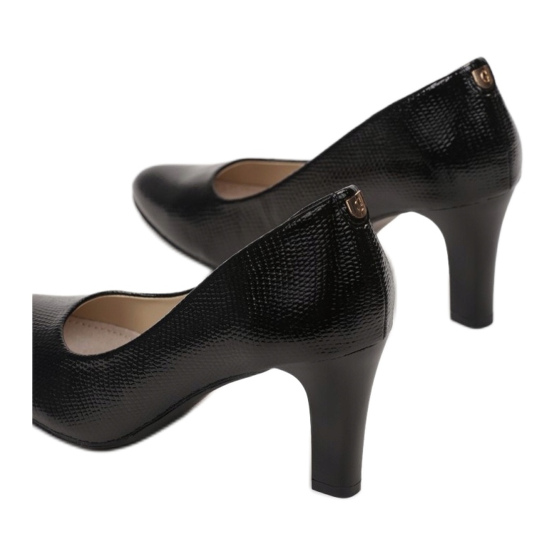 Lodičky jsou vyrobeny z vysoce kvalitní eko kůže a mají jemnou texturu, která jim dodává charakter. Stélka z přírodní kůže zajišťuje potěšení z celodenního nošení a zároveň zajišťuje správné odvětrávání nohou. Středně vysoký štíhlý podpatek 8 cm decentně prodlužuje siluetu, díky čemuž jsou tyto lodičky perfektní volbou pro mnoho příležitostí - do práce i na večerní vycházky.