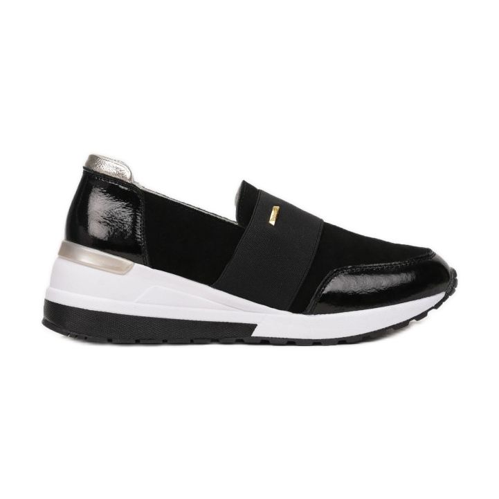 Tenisky Vices FT87-184 představujeme v černo-zlatém provedení, které skvěle kombinují módní styl s pohodlím každodenního používání. Tyto jedinečné boty na nízkém klínku se vyznačují silnější podrážkou s nášlapem, která zajišťuje nejen stabilitu, ale i módní vzhled. Díky slip-on střihu s kotníkovým svrškem a kulatou špičkou jsou tyto tenisky nejen pohodlné, ale také se snadno obouvají a zouvají.