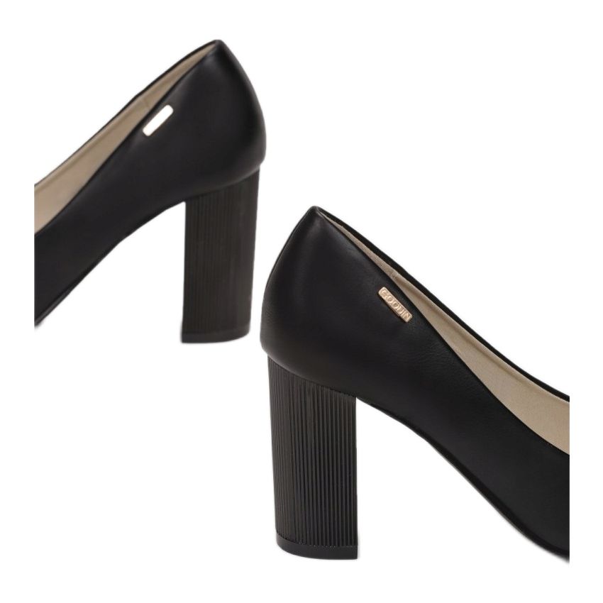 Lodičky vyrobené z vysoce kvalitní ekokůže jsou nejen estetické, ale i praktické. Vložka z přírodní kůže zajišťuje komfort nošení i po dlouhou dobu. Srdcem tohoto modelu je 9centimetrový sloupek, který dodává jemnou eleganci a špičatý nos umožňuje optické prodloužení nohou.