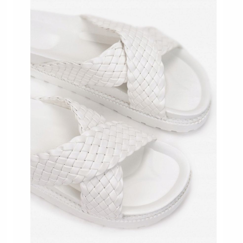 Žabky Vices JA006-71 v bílé barvě jsou perfektní volbou pro každou ženu, která si každý den cení pohodlí a módní vzhled. Tyto nazouvací mezky se vyznačují širokými, tkanými pásky, které se vpředu kříží a dodávají obuvi jedinečný charakter.