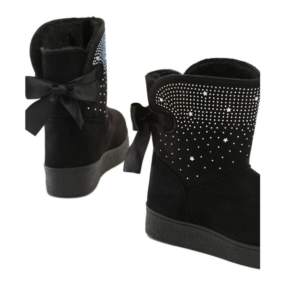 Charakteristická 3,5 cm vysoká platforma dodává pohodlí při chůzi a díky kulaté špičce jsou tyto sněhule nejen praktické, ale i módní. Další výhodou jsou ozdobné kamínky na svršku, které dodávají elegantní akcent každodennímu stylingu. Celek doplňuje jemná mašlička, která botám dodává ženský půvab.