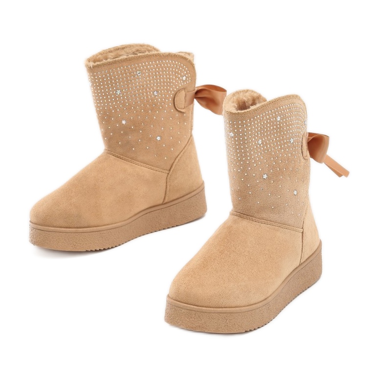 Díky 3 cm vysoké platformové podrážce a zaoblené špičce jsou tyto sněhule nejen pohodlné, ale také dodají lehkost každému zimnímu stylingu. Další výhodou jsou ozdobné kamínky na svršku, které dodávají botám trochu lesku a jedinečný charakter.