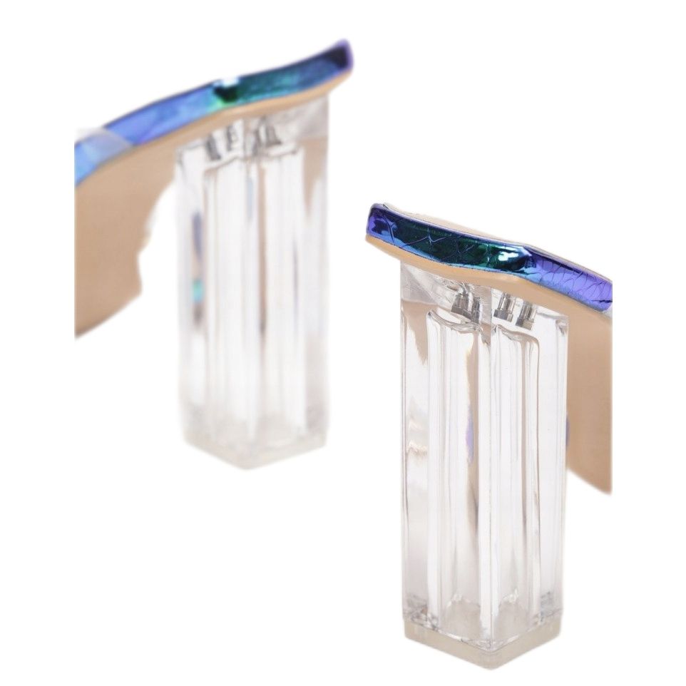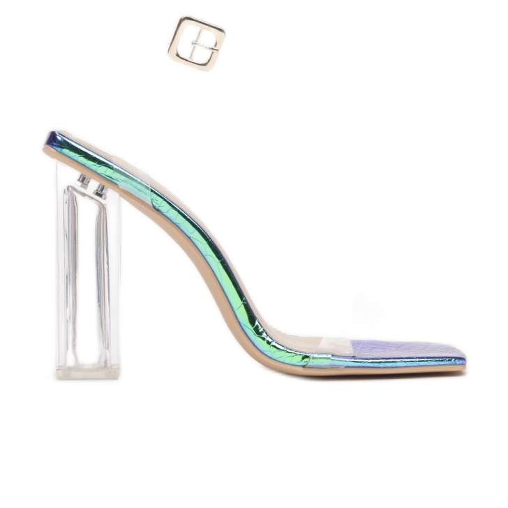 Uměle se zapínají na přezku, zajišťují bezpečné uchycení a stabilitu, což z nich dělá perfektní nabídku pro různé příležitosti. 10,5 cm vysoký geometrický sloupek dodává eleganci a zároveň opticky prodlužuje nohy. Odkrytá hranatá špička zdůrazňuje moderní charakter těchto bot.