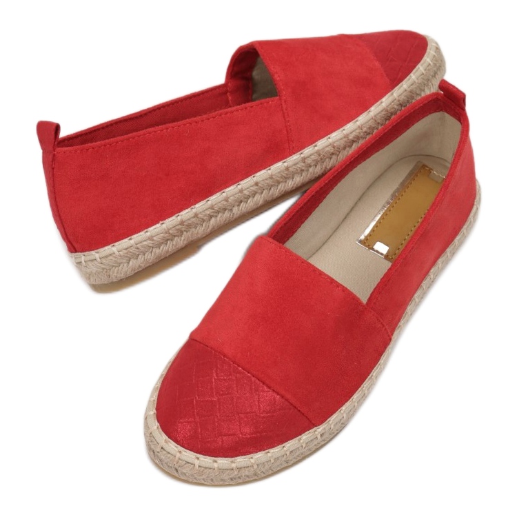 Nazouvací espadrilky Vices LX209-64-red jsou perfektní volbou pro ženy, které oceňují kombinaci elegance a pohodlí. Tyto jedinečné boty v intenzivní červené barvě přitahují pozornost díky své jemně leštěné zaoblené špičce zdobené jemnými drážkami. Svršek, který končí těsně před kotníkem, dodává lehkost a díky němu se espadrilky perfektně hodí k letním stylům.