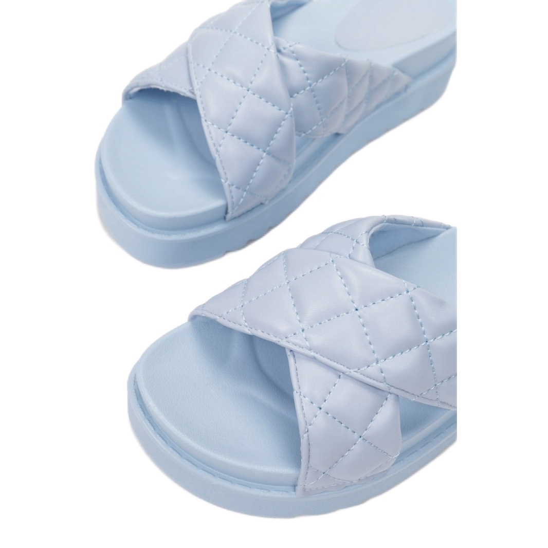 Design žabek spojuje modernost a klasiku. Otevřené špičky a pata v kombinaci s kulatou špičkou z nich dělají velmi vzdušné, ideální pro teplé dny. Přední ramínka, překřížená a pokrytá elegantním prošíváním ve tvaru diamantu, dodávají eleganci. Vyrobeny z ekokůže jsou nejen šetrné k životnímu prostředí, ale také nenáročné na údržbu.