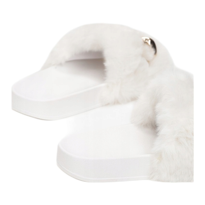 Objevte eleganci a pohodlí s žabkami Vices NA18-71 v klasické bílé barvě. Tyto slip-on skluzavky jsou dokonalou kombinací stylu a funkčnosti, ideální pro každodenní styling. Přední stranu zdobí široký pruh imitace kožešiny, který jim dodává jedinečný charakter a elegantní aplikace ve tvaru řetízku dodává celku designový nádech.