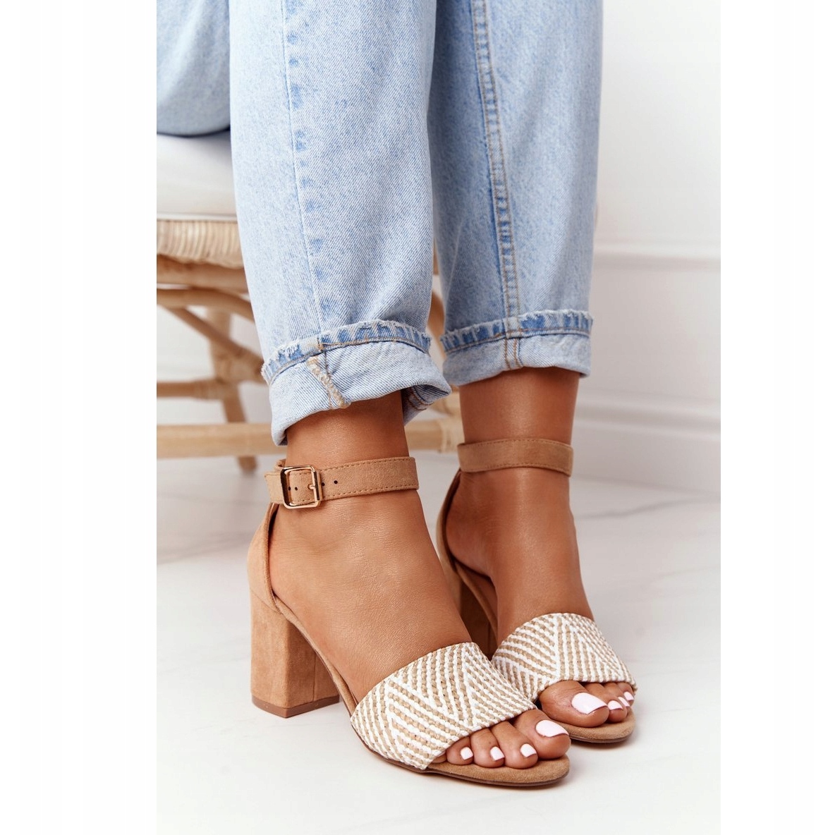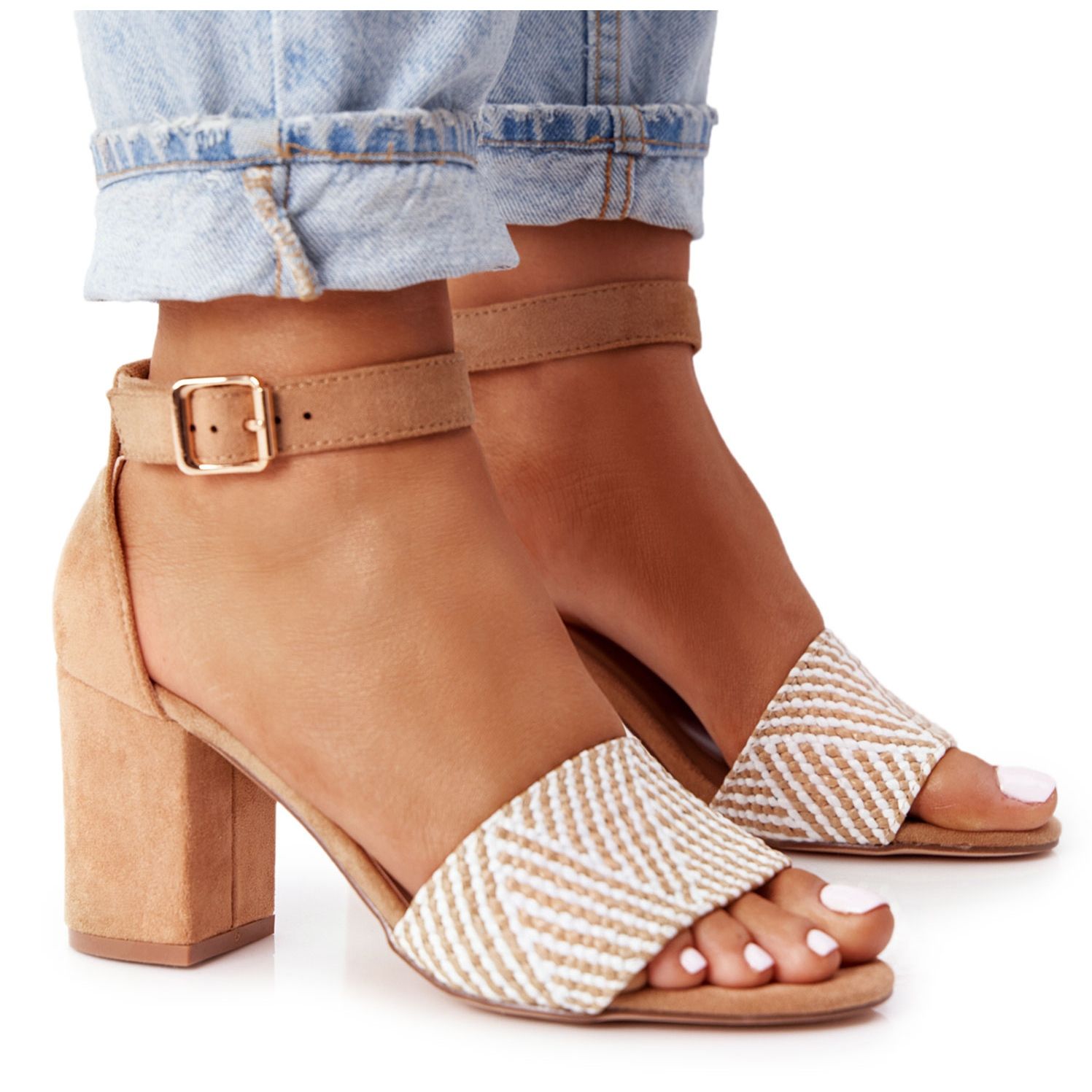 Podrobnosti: EVE Světle hnědé novomanželské sandály s pletením na tyči béžový
