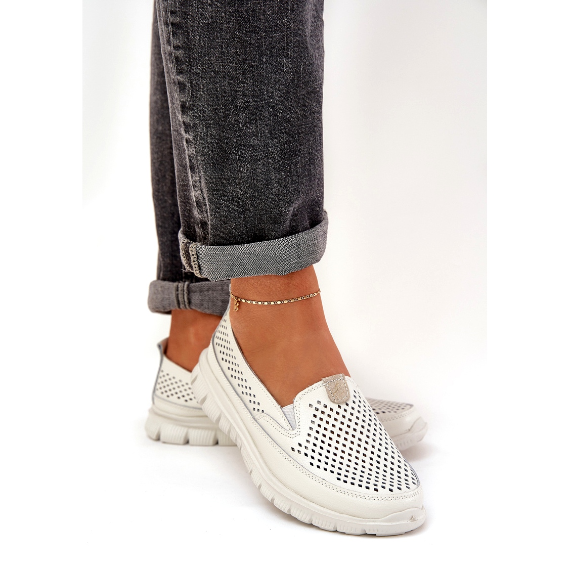 Objevte eleganci a pohodlí díky Openwork Moccasins Eveno 24PB18-6870 v klasické bílé barvě. Tato lehká, dámská bota vyrobená z přírodní kůže jsou ideálním návrhem pro teplé dny a kombinují módní design s funkčností. Nabízejí na stabilní platformě s výškou 3 cm, nabízejí nejen pohodlí, ale také atraktivní vzhled, který dokonale doplní denní stylizace.