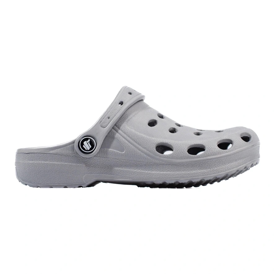 Jednoduché, univerzální flip -flops pro chlapce v módní, šedé barvě. Vyrobeno z odolného plastu venku, s měkkou textilní stélkou (100%) - ideální pro hraní venku a pro rychlé umístění doma nebo mateřské školy. Gumová podešev s běhounem zajišťuje přilnavost a plná špička chrání prsty během aktivity.