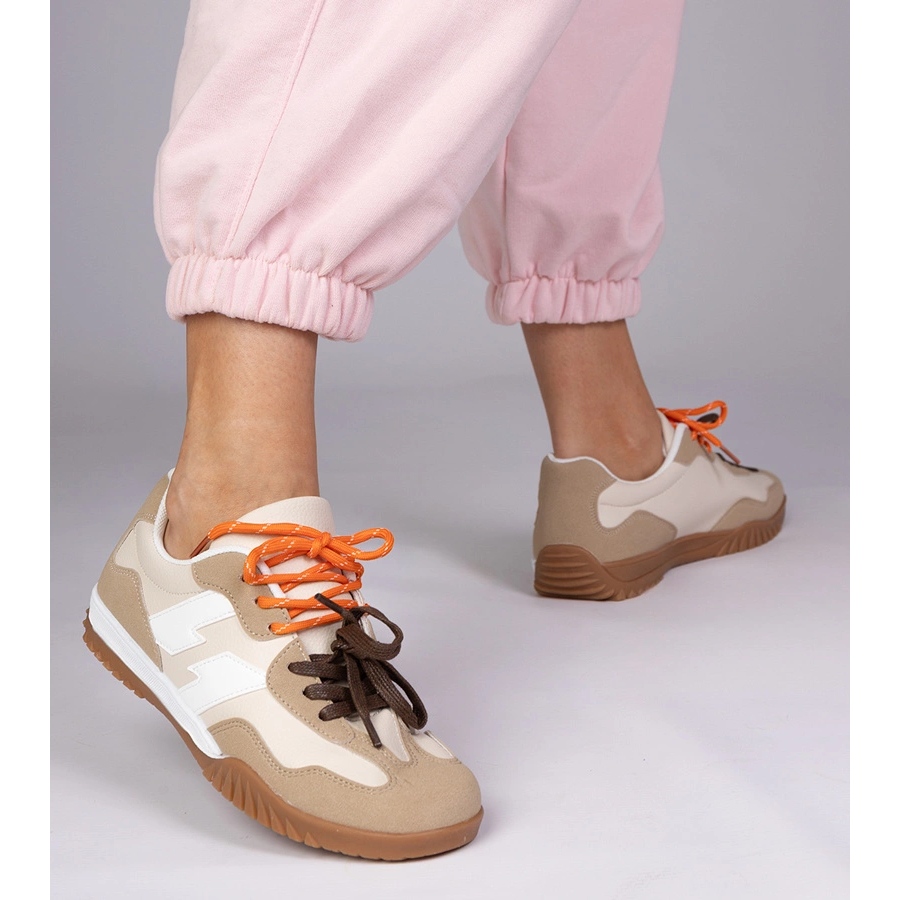 Představujeme tenisky béžových tenisek s barevnými tkaničkami - perfektní volbou pro ženy, které chtějí kombinovat pohodlí s módním stylem. Tyto sportovní boty se vyznačují minimalistickým designem v krásném béžovém odstínu, který se dokonale hodí do různých stylizací, od příležitostných po elegantnější.