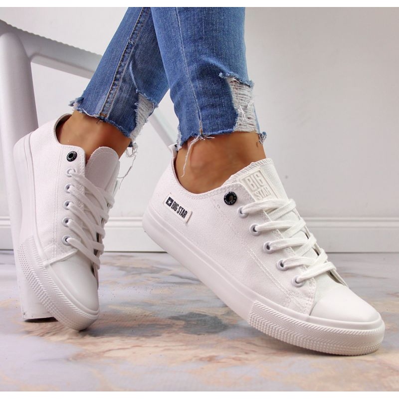 Tenisky Big Star W KK274008 v bílé barvě jsou perfektní volbou pro ženy, které si cení pohodlí a módního vzhledu každý den. Tyto nízké šněrovací boty v sobě spojují styl a funkčnost, díky čemuž jsou nepostradatelným prvkem letní a jarní každodenní stylizace.