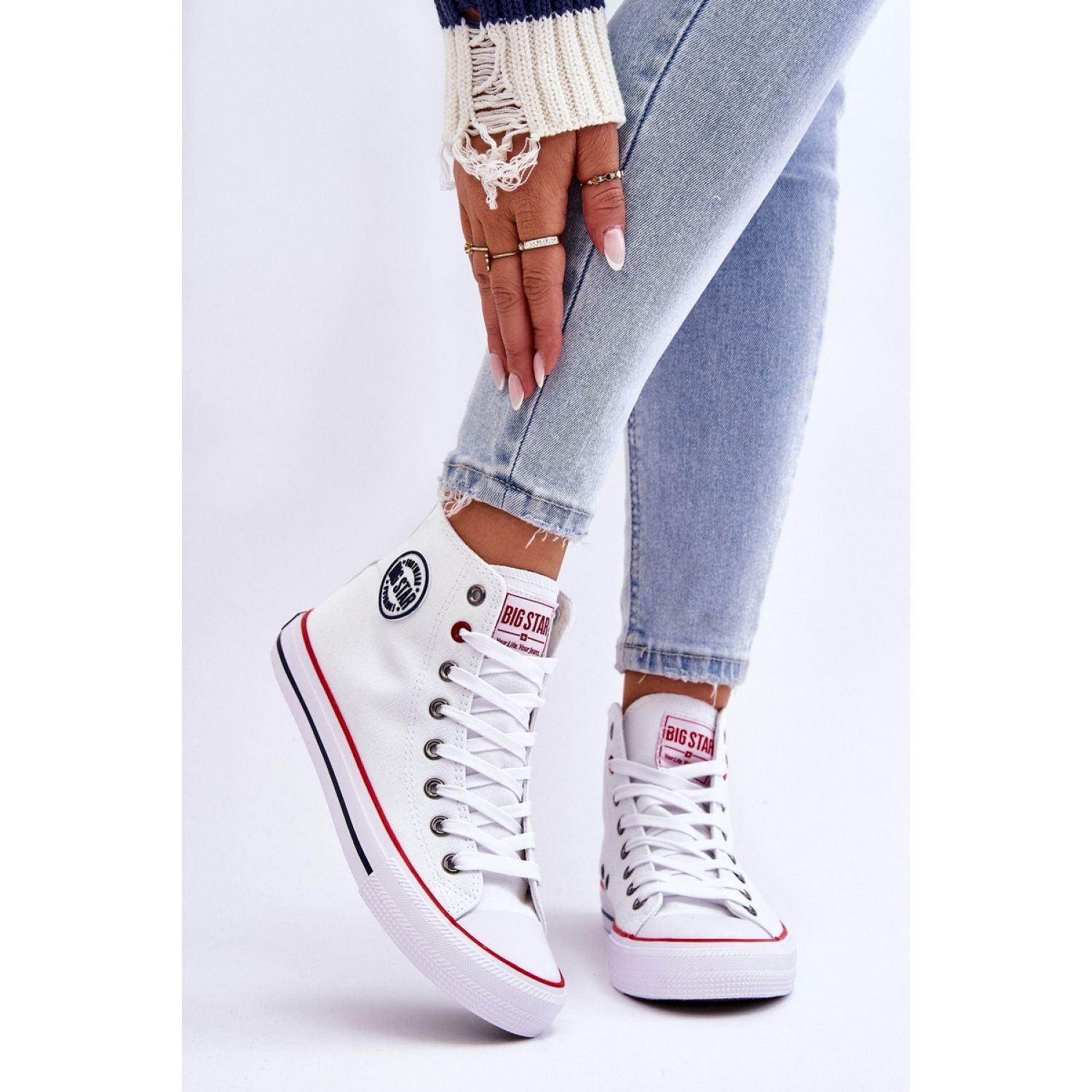 Sneakers Big Star T274026 White - Krok ve stylu je skvělou volbou pro ženy, které si cení kombinace pohodlí a módního designu. Vysoké tenisky od renomované polské značky Big Star se rozlišují nejen estetikou, ale také s funkčnostmi. Jejich horní část z vysoce kvalitní tkaniny nejenže vypadá skvěle, ale také poskytuje dostatečné větrání a pohodlí při nošení.