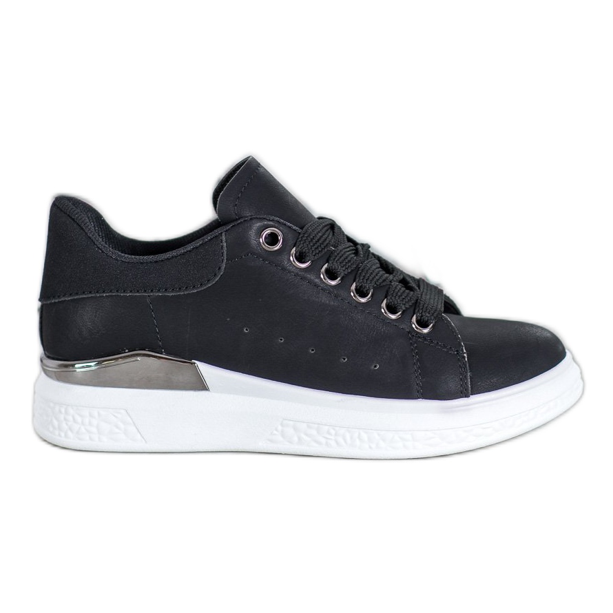 Objevte pohodlí a styl s teniskami na platformě z eko kůže od renomovaného výrobce SHELOVET! Tyto jedinečné černé boty kombinují eleganci se sportovním charakterem, což z nich dělá perfektní volbu pro každodenní nošení. Vyrobeny z vysoce kvalitní ekologické kůže poskytují nejen módní vzhled, ale také komfort nošení. Stříbrný kovový prvek v podrážce je překvapivým akcentem, který rozbíjí klasický design a dodává celku nádech modernosti.