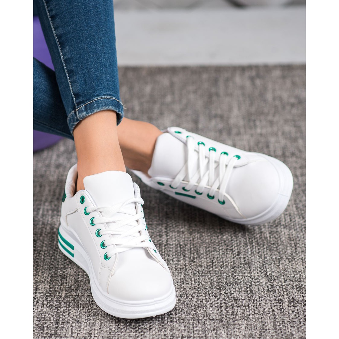 SHELOVET Tenisky Na Platformě bílý zelený