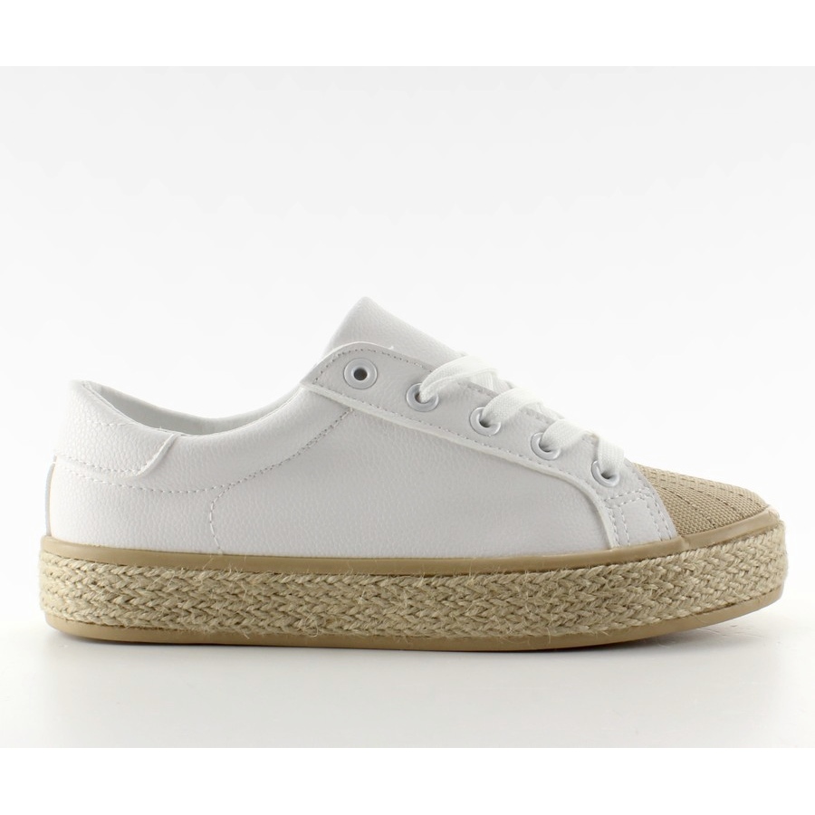 Moderní lehké dámské tenisky kombinující přírodní charakter lněné podrážky s elegancí bílé ekokůže. Model NA05P je univerzální nabídkou pro každodenní použití - minimalistický design bez vzoru s plátěnou úpravou na špičkách dodá svěžest každému stylu.
