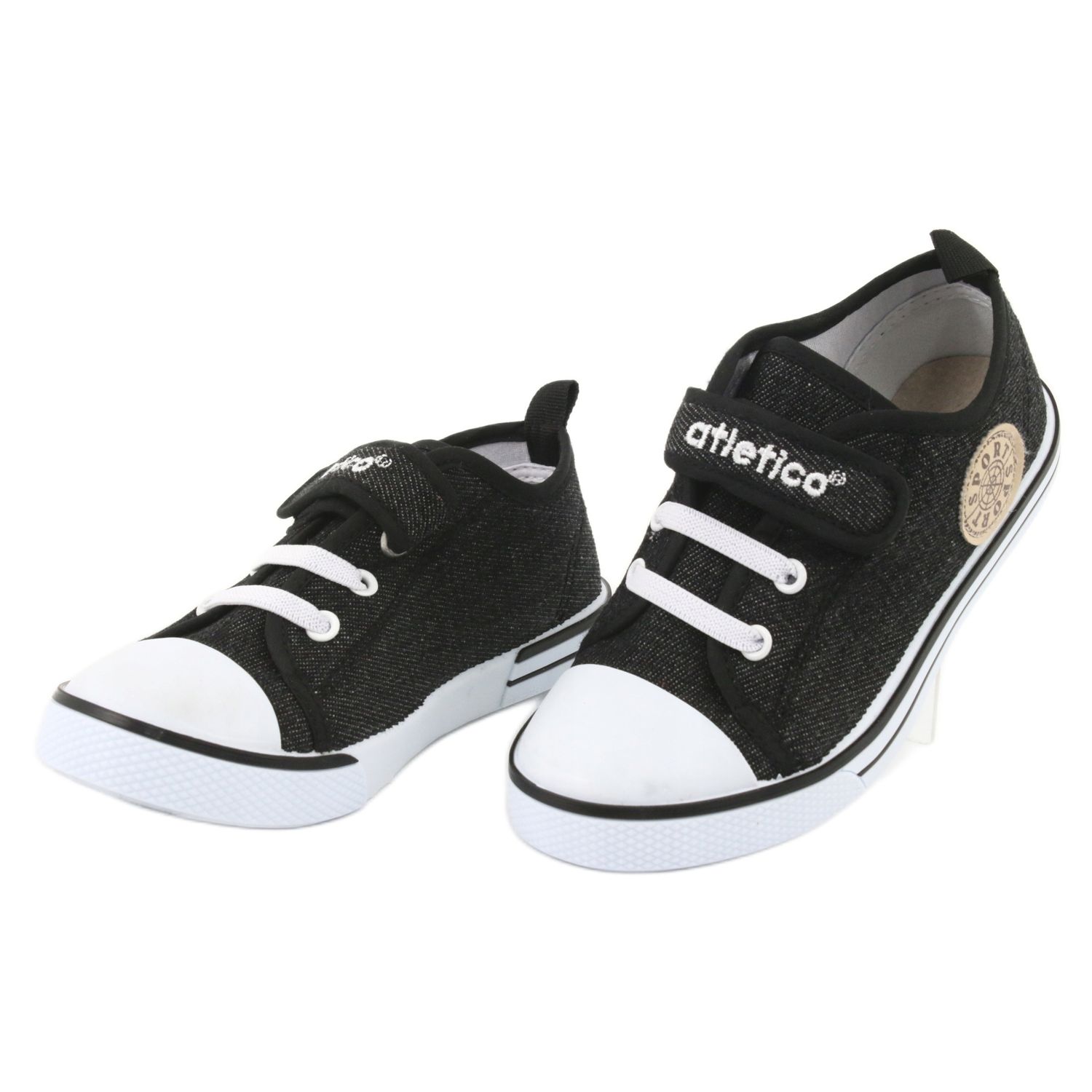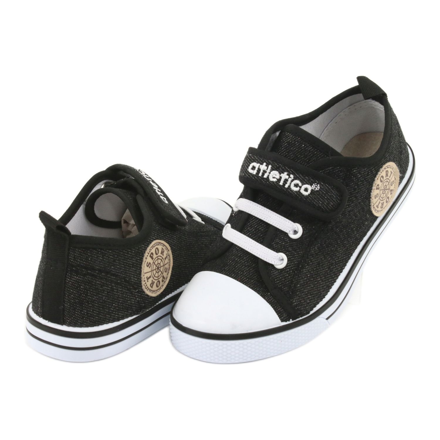Klasické dětské tenisky Atletico BSM029 v černé barvě s džínovým povrchem kombinujte pohodlí s univerzálním designem. Textilní horní a měkká, bílá podešev zajišťuje pohodlí celý den a kožená vložka se stará o hygienu a lepší záchvat nohy. Upevnění na suchý zip usnadňuje oblékání a namontování boty - ideální pro aktivní chlapce.