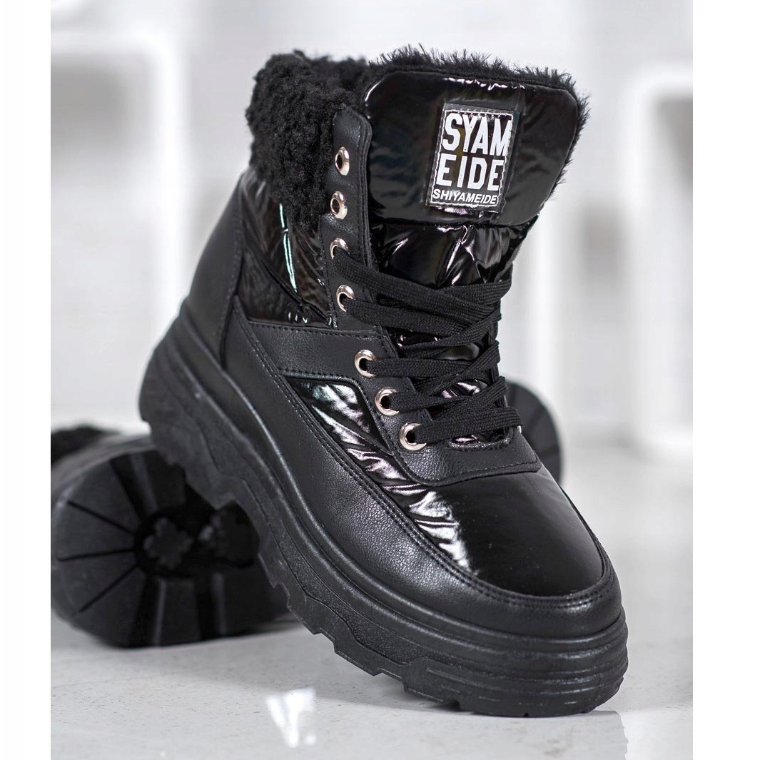 Tenisky mají pevnou platformu o výšce 2,5 cm a podpatku 4 cm, což dodává lehkost každému kroku. Díky klasické černé barvě se tyto boty hodí k mnoha různým stylům – ležérním i elegantnějším. Navíc kabát z ovčí kůže na svršku jim dodává módní charakter, takže jsou nejen funkční, ale také stylové.