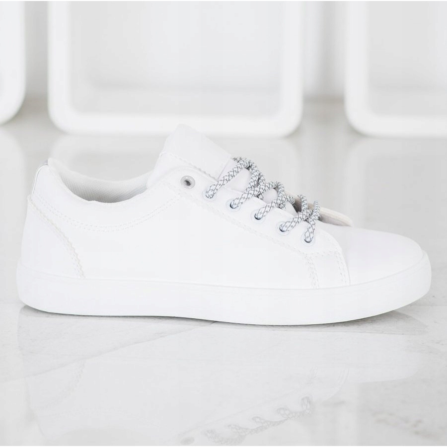Tenisky SHELOVET s ozdobnými tkaničkami v bílé barvě jsou perfektní volbou pro ženy, které si cení stylu a pohodlí každý den. Tyto dámské tenisky vyrobené z ekologické kůže se vyznačují hladkým povrchem, který dokonale odpovídá aktuálním trendům. Černobílé tkaničky s jemným vzorem jsou jemným, ale efektním akcentem, dodávají obuvi jedinečný charakter.