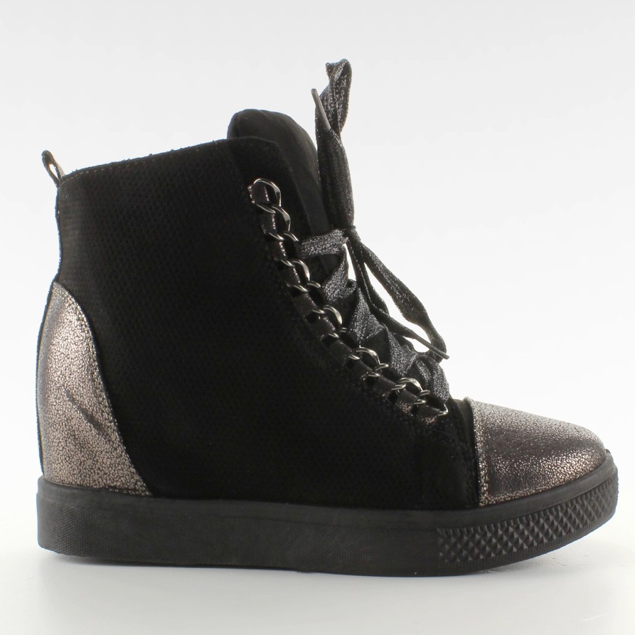 Představujeme tenisky R72 Black - dokonalá kombinace stylu a pohodlí pro moderní ženy. Tyto urostlé, černé dámské tenisky na 6,5 cm vysokém skrytém podpatku vynikají originální látkovou úpravou s drobnými dírkami, která jim dodává jedinečný charakter. Špičky a pata jsou vyrobeny z jemně lesklé ekologické kůže, která dodává eleganci a třídu.