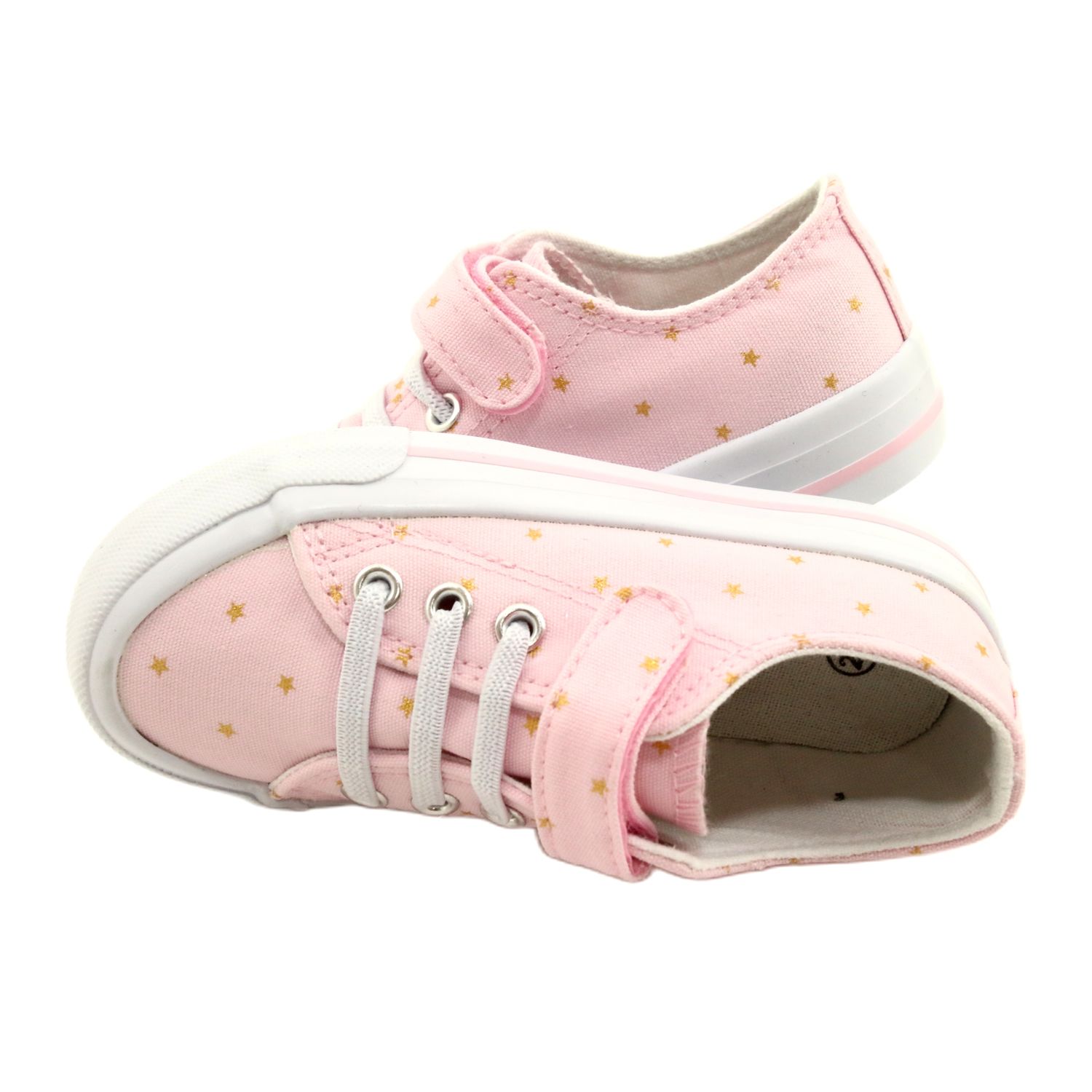Stylové a pohodlné tenisky pro dívky, vyrobené z vysoce kvalitní tkaniny. Měkká, bílá podešev poskytuje pohodlí během zábavných a každodenních aktivit a tuhá stabilizace stabilizuje nohu. Dekorativní stříbrné hvězdy a zlaté detaily dávají boty charakter a usnadňují porovnávání s různými styly.