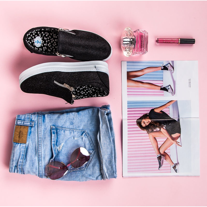 4 cm vysoká platforma přidává určitou výšku a zároveň zajišťuje stabilitu při chůzi. Díky jemnému černému třpytu se tyto tenisky odlišují od tradičních modelů a dodávají každému stylu kouzlo.