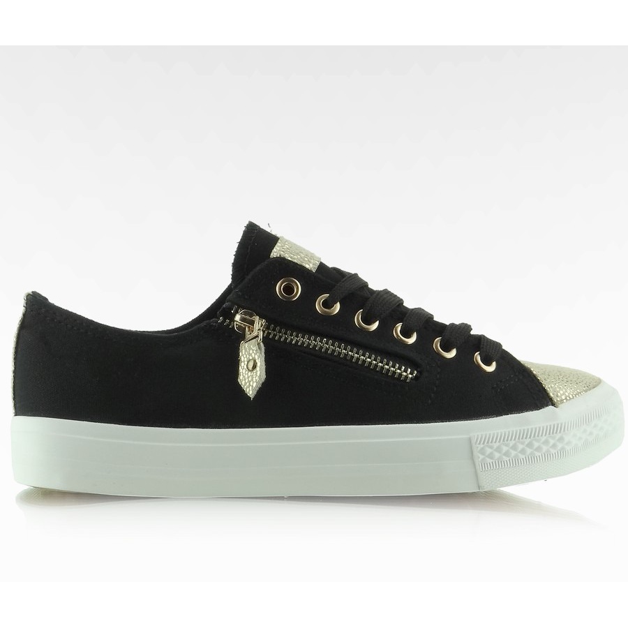 Tenisky se zlatou špičkou BL28P - černé, nízké, stále v módě