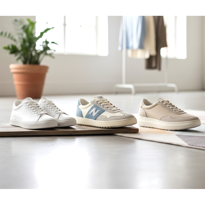 Druhým typem jsou retro slim tenisky: nízkoprofilové modely odkazující na 70. a 80. léta s jedním jemným pruhem nebo minimalistickým logem. Tento styl bude dobře fungovat jak v každodenních, ležérních outfitech, tak v kombinaci s elegantnějšími šatníky. Zvláště na jaře a v létě 2026 jsou oblíbené verze v pastelových barvách - krémová, šedá, béžová.