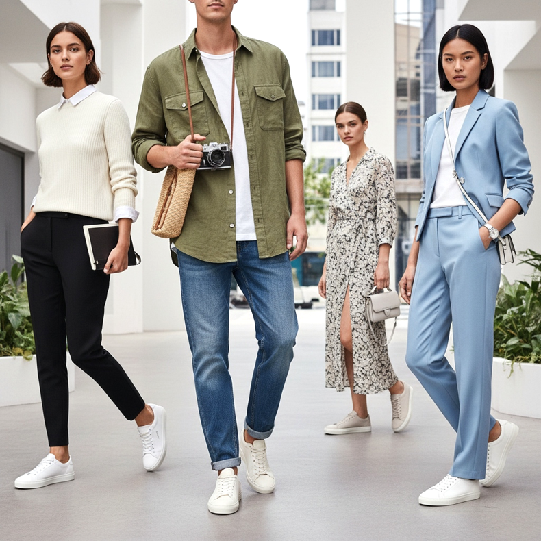 Bílé nebo krémové tenké tenisky vypadají obzvlášť efektně k jarnímu obleku - dámskému nebo pánskému. To je jeden z klíčových streetstyle trendů roku 2026: formálnost kombinovaná se sportovní ležérností. Vyberte si tento vzhled, pokud chcete vypadat stylově a moderně.