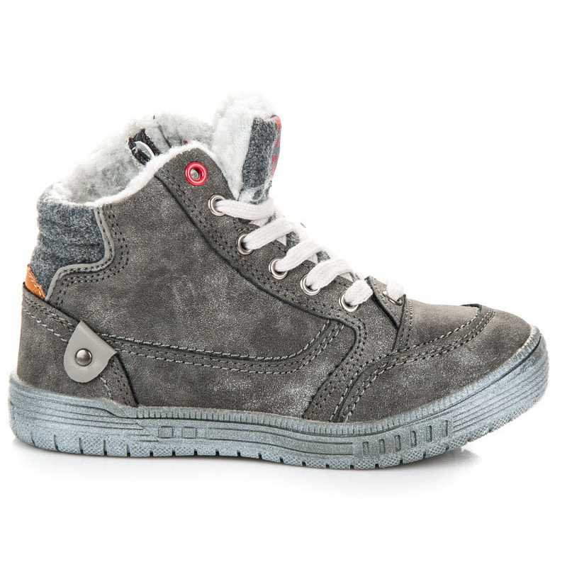 Šedé tenisky American Club jsou praktickou a pohodlnou dětskou obuví, kombinující sportovní styl s hřejivou izolací. Vyrobeno z ekologické kůže, snadno se čistí, vnitřní podšívka z ovčí kůže zajišťuje tepelný komfort v chladnějších dnech. Klasické tkaničky umožňují přesné přizpůsobení chodidlu, což zlepšuje stabilitu při hře a každodenních činnostech.