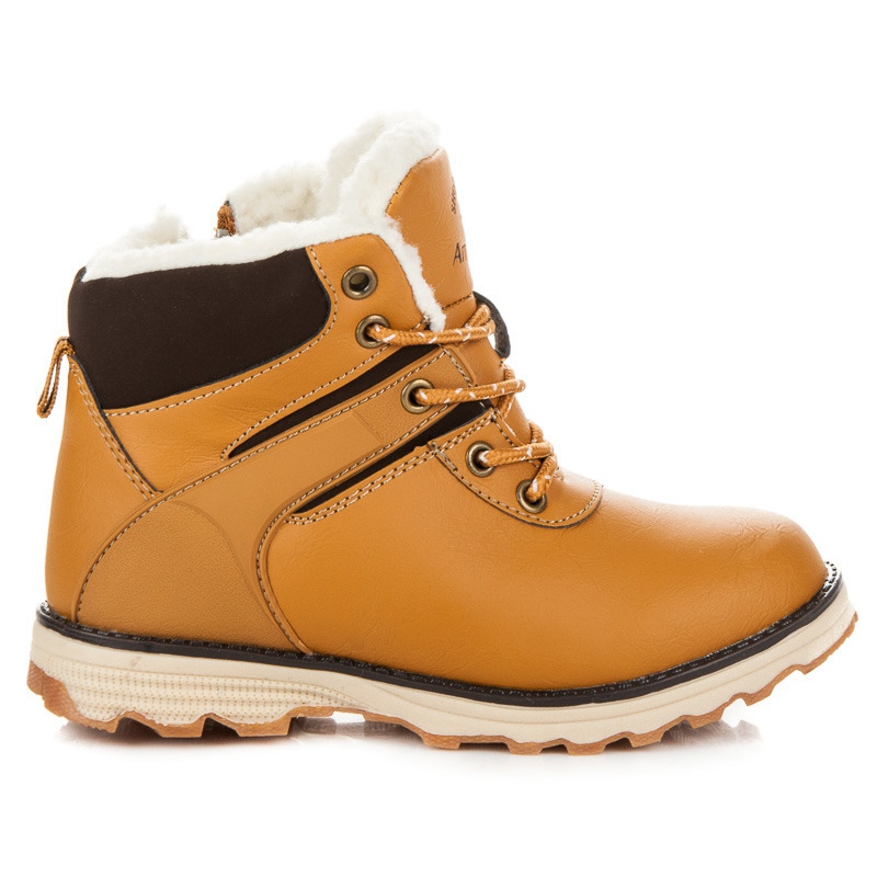 Do chladnějších dnů perfektní dětské pohorky z ekologické kůže zateplené měkkým ovčím kožichem. Klasický hnědý a béžový povrch s tmavší vsadkou v horní části jim dodává univerzální, ležérní charakter – ideální pro každodenní použití v sezóně podzim/zima.