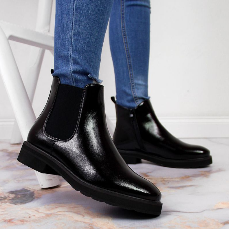 Teplé boty Chelsea, lakované Sergio Leone W SK353 černé černý