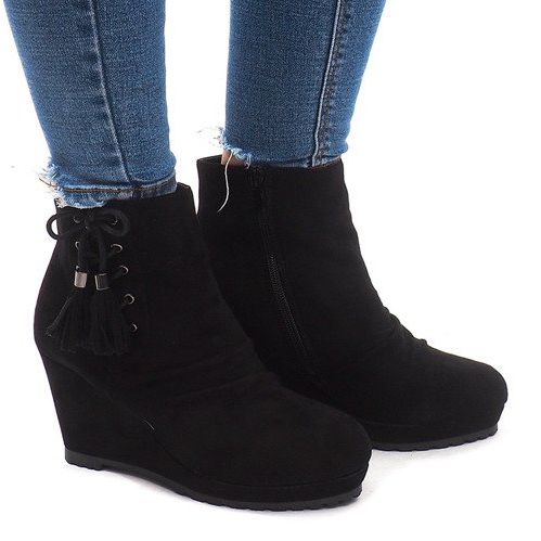 Teplé boty na klínku 778-KA černé černý