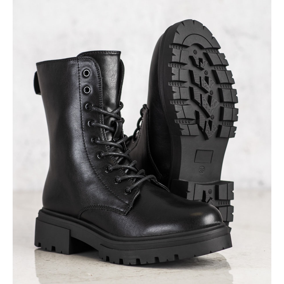 Představujeme zateplené bovver boty z ekokůže od Evento, které se perfektně hodí k trendům ležérního a rockového stylu. Tyto černé kotníkové boty jsou perfektní volbou pro podzimní a zimní dny, kdy chceme spojit pohodlí s módním vzhledem.