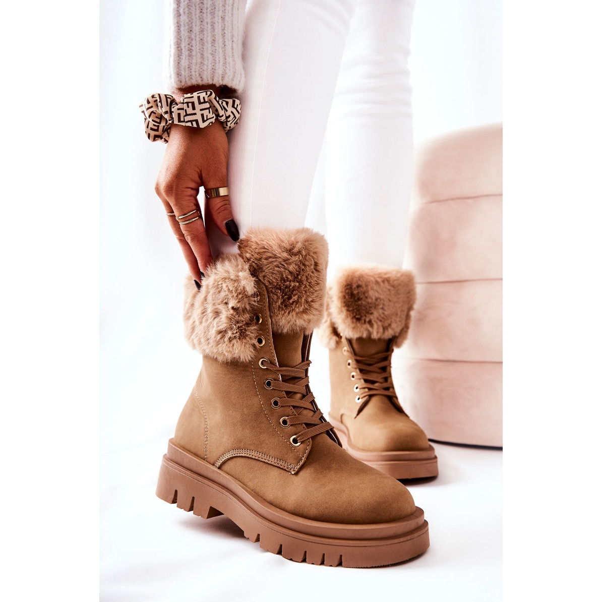 Podrobnosti: Teplé Boty S Kožešinou Béžová Farley hnědý