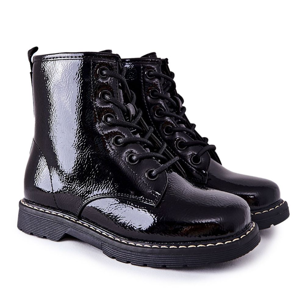 Vinceza Teplé dětské boty lakované černou Gessou černý
