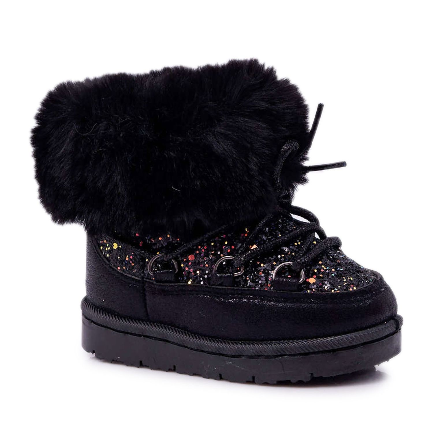 FRROCK Teplé dětské sněhule s kožešinou Black Crystal Fox černý